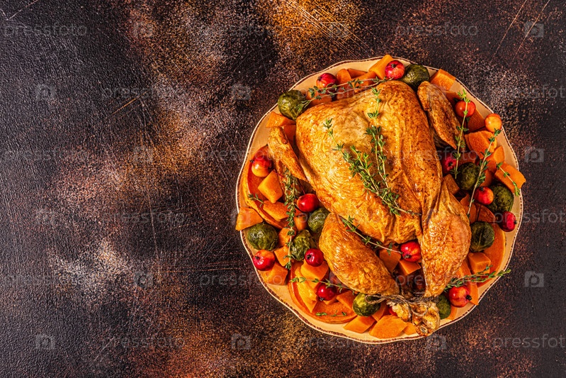 Подается жареная индейка/курица с овощами