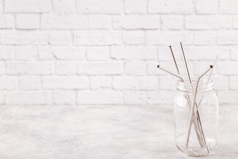 Многоразовые металлические трубочки для питья и чистящая щетка в банке
