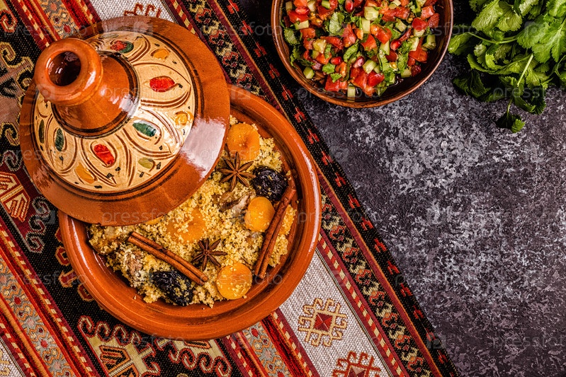 Традиционный марокканский тажин из курицы с сухофруктами и специями