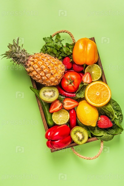 Фрукты и овощи, богатые витамином С, в коробке