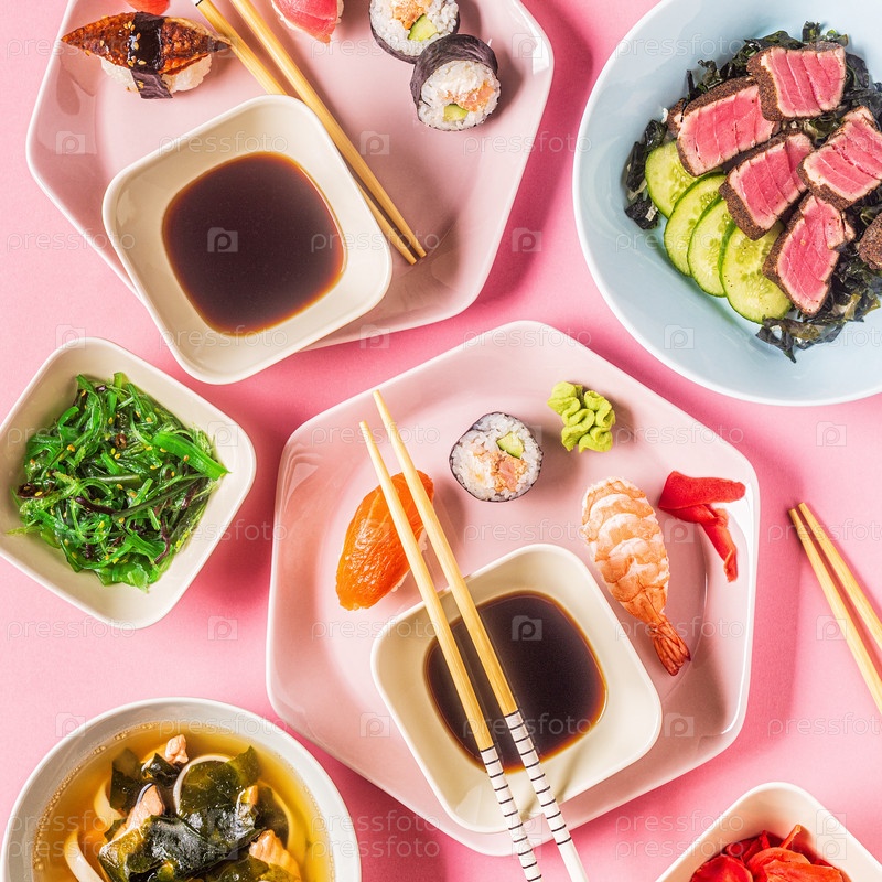 Стол с традиционной японской едой