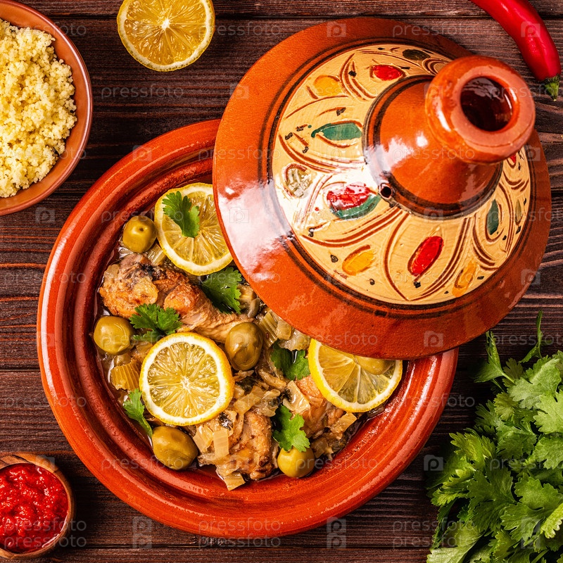 Традиционный марокканский тажин из курицы с солеными лимонами и оливками