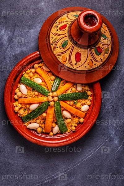 Овощной тажин с миндалем и кускусом из нута