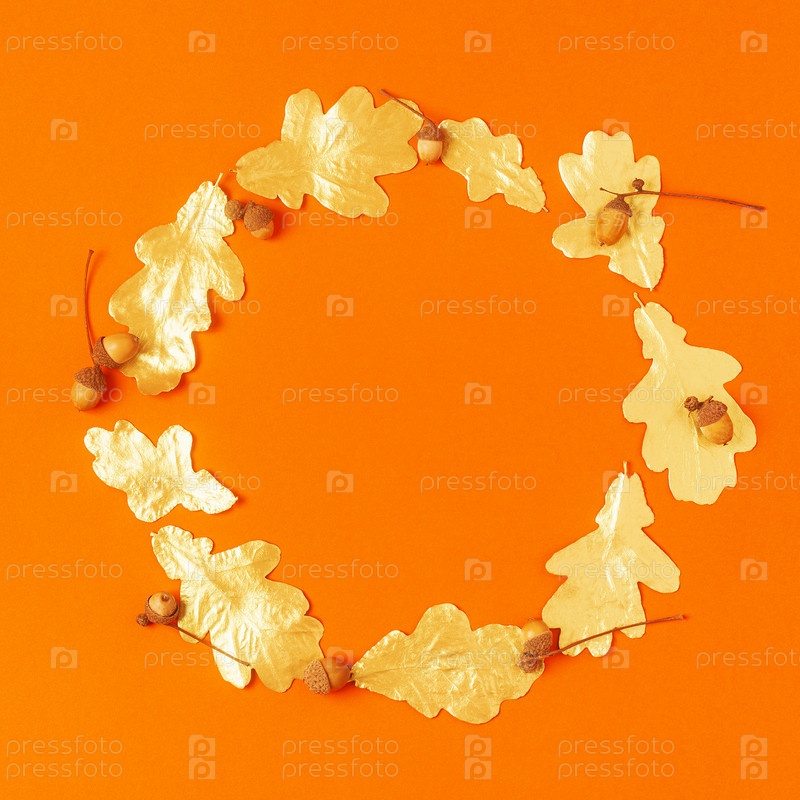 Осенние листья на оранжевом фоне