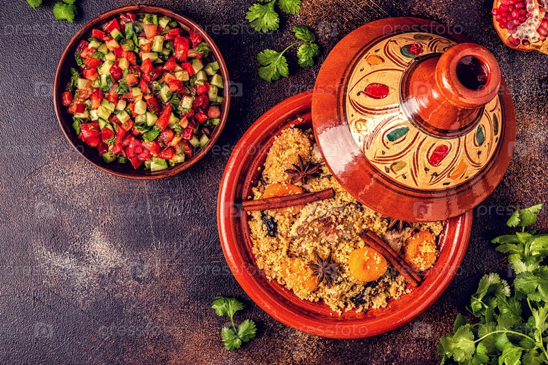Традиционный марокканский тажин из курицы с сухофруктами и специями