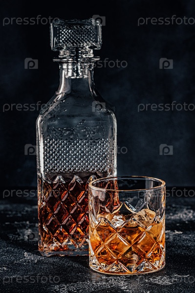 Стакан виски с квадратным графином