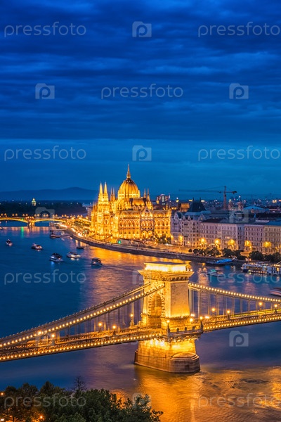 Панорама ночного Будапешта. Достопримечательности Венгрии