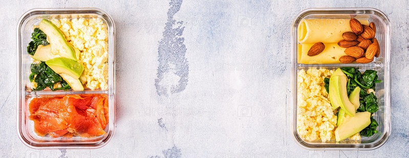 Здоровый сбалансированный ланч-бокс, обед на кетогенной диете