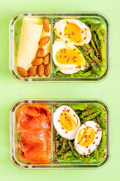 Здоровый сбалансированный ланч-бокс, обед на кетогенной диете