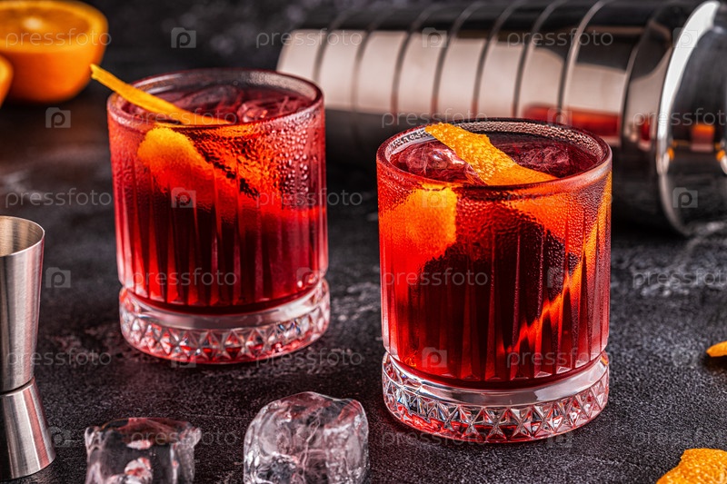 Коктейль Негрони с апельсиновой цедрой и льдом