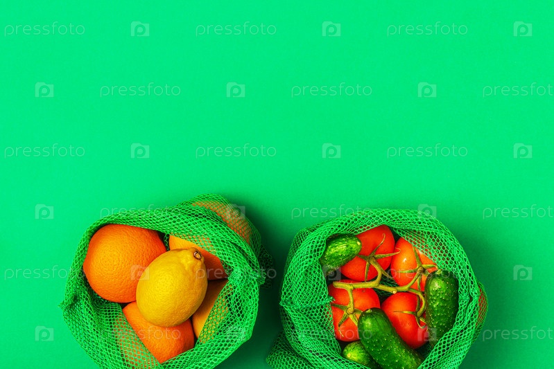 Свежие фрукты и овощи в многоразовых тканевых сетчатых мешках
