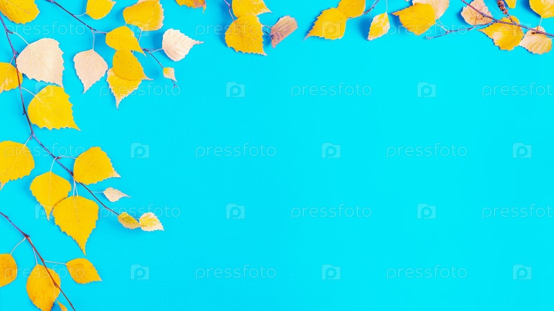 Осенние желтые листья на синем фоне