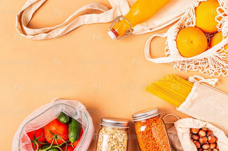 Изделия в тканевых мешках, стеклянная посуда. Экологичный шоппинг