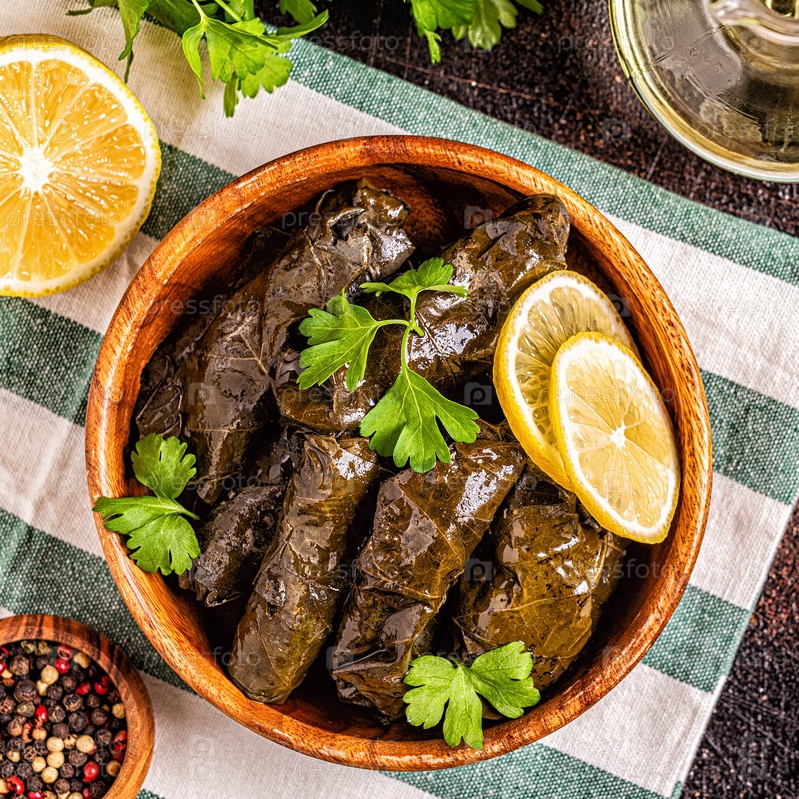 Долма, фаршированные виноградные листья с рисом и мясом