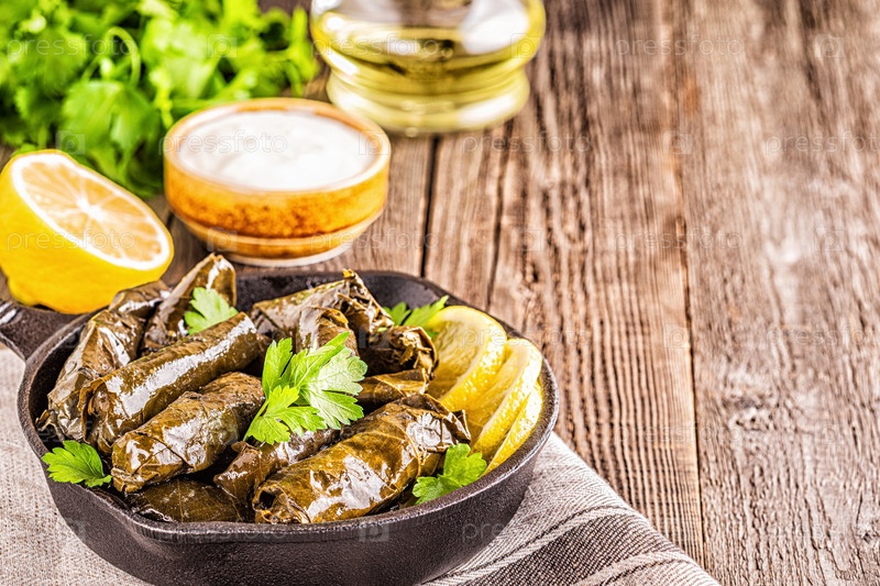 Долма, фаршированные виноградные листья с рисом и мясом