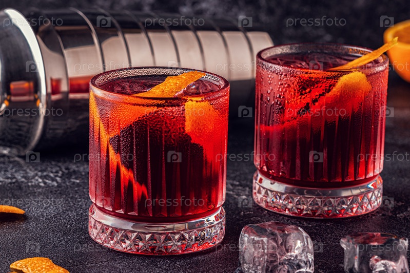 Коктейль Негрони с апельсиновой цедрой и льдом