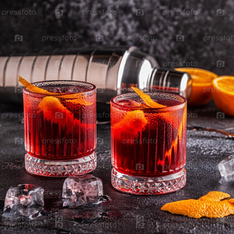 Коктейль Негрони с апельсиновой цедрой и льдом
