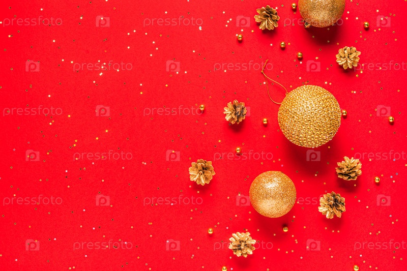 Рождественская композиция на красном фоне