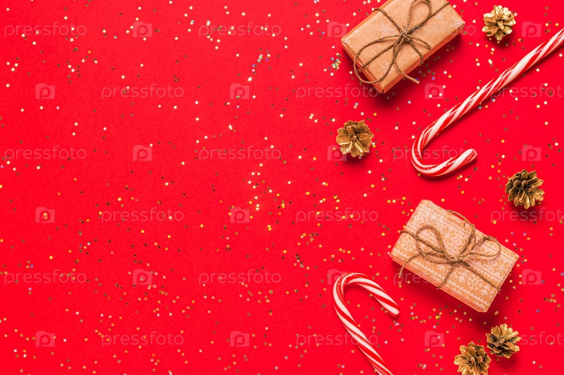 Рождественская композиция на красном фоне