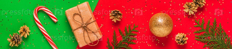 Рождественская композиция на красном, зеленом фоне