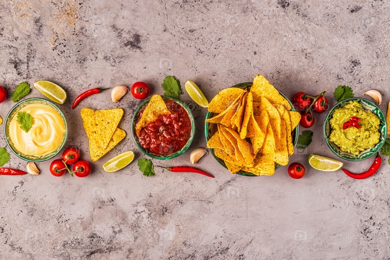 Мексиканская кухня: гуакамоле, сальса, сырные соусы с начос