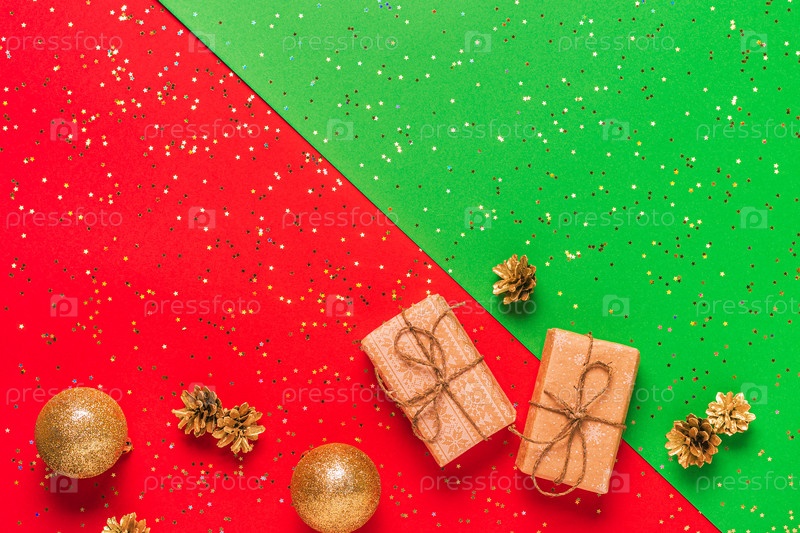 Рождественская композиция на красном, зеленом фоне