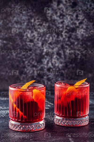 Коктейль Негрони с апельсиновой цедрой и льдом