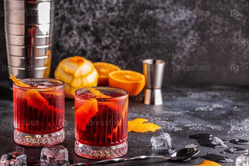 Коктейль Негрони с апельсиновой цедрой и льдом