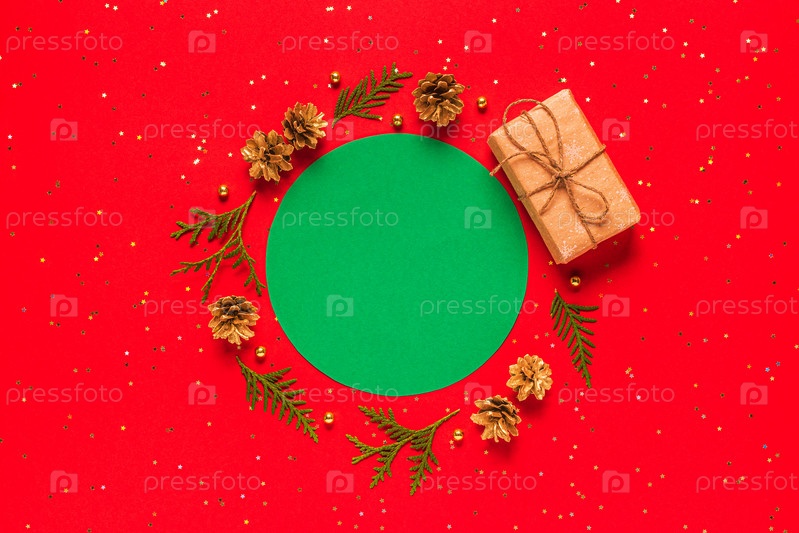 Рождественская композиция на красном фоне