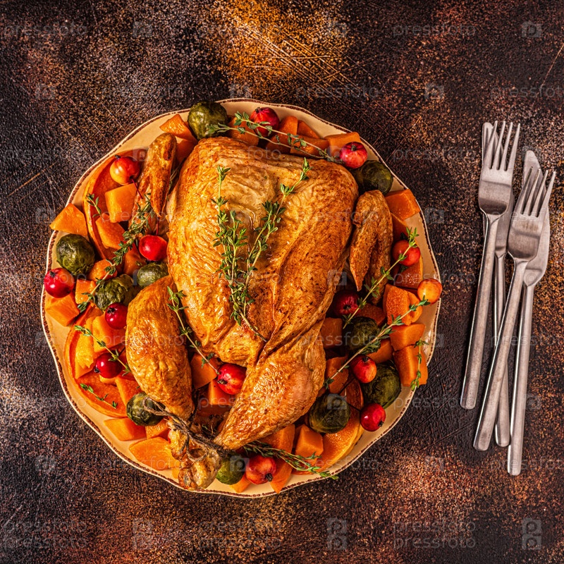 Подается жареная индейка/курица с овощами
