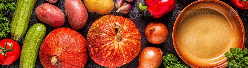 Свежие осенние овощи для приготовления пищи на темном фоне