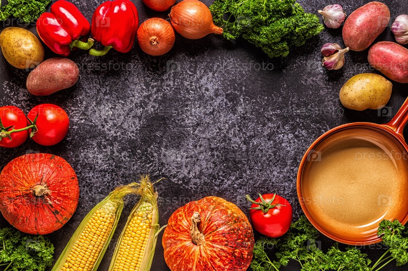 Свежие осенние овощи для приготовления пищи на темном фоне