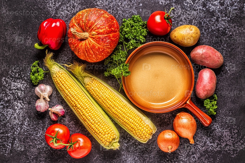 Свежие осенние овощи для приготовления пищи на темном фоне