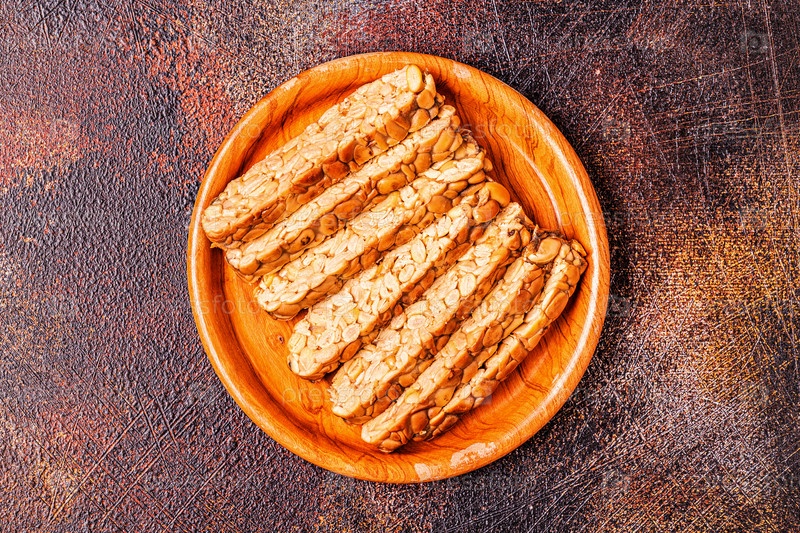 Нарезанный свежий сырой темпе, традиционная индонезийская еда