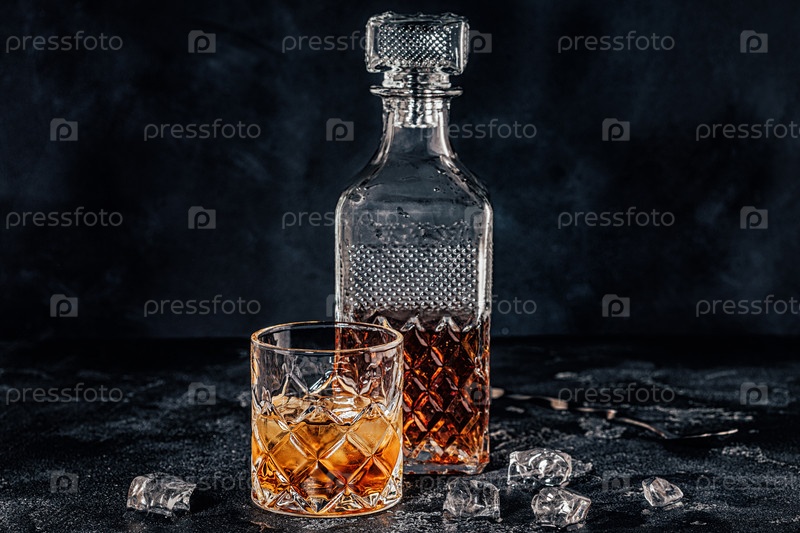Стакан виски с квадратным графином