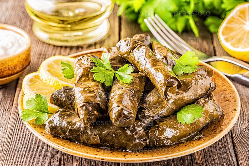 Долма, фаршированные виноградные листья с рисом и мясом