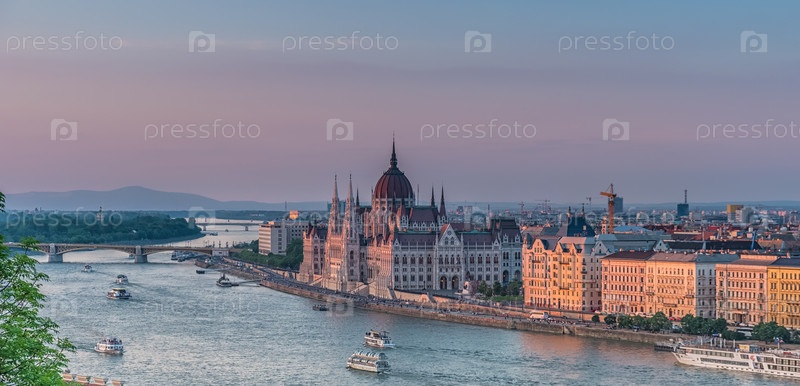 Панорама Будапешта на закате. Венгерские достопримечательности
