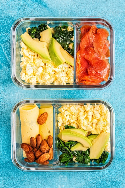 Здоровый сбалансированный ланч-бокс, обед на кетогенной диете