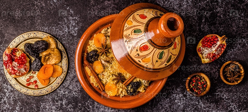 Традиционный марокканский тажин из курицы с сухофруктами и специями