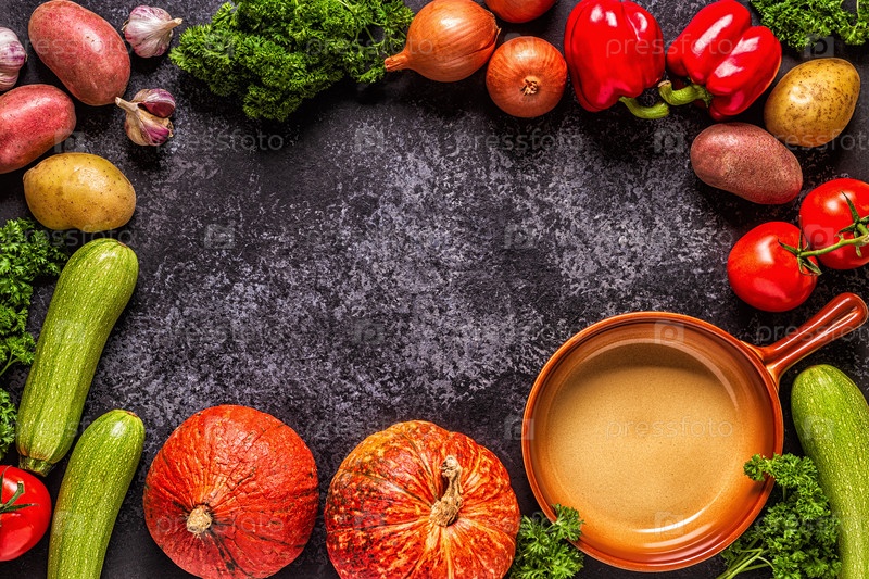 Свежие осенние овощи для приготовления пищи на темном фоне