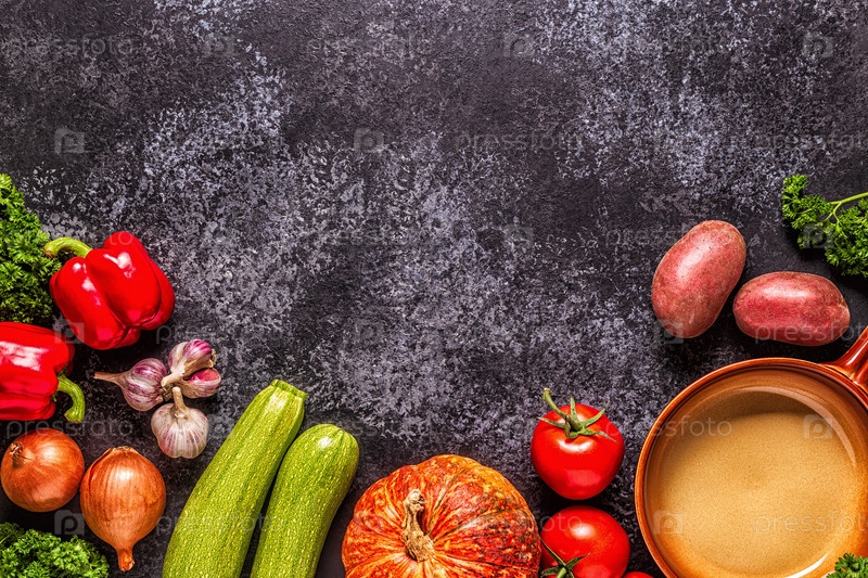Свежие осенние овощи для приготовления пищи на темном фоне