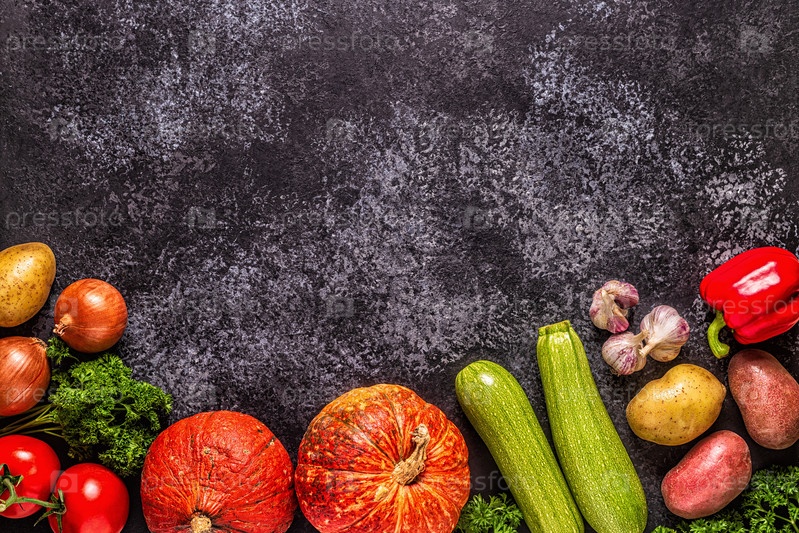 Свежие осенние овощи для приготовления пищи на темном фоне