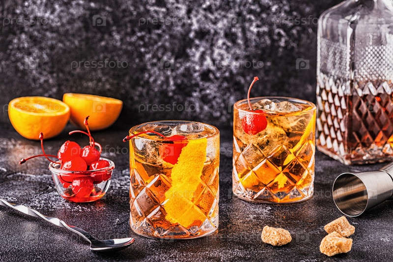 Старомодный коктейль с вишней и апельсиновым твистом