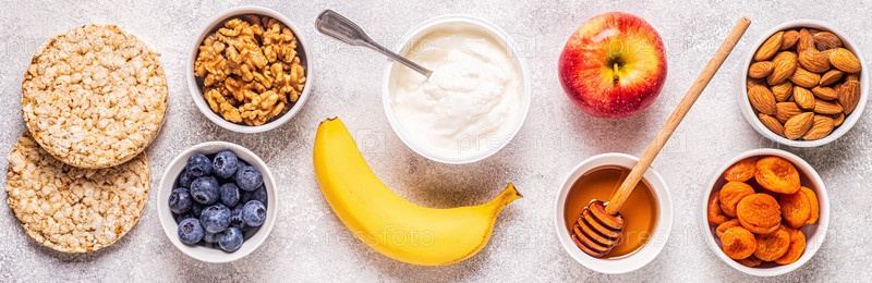 Концепция здоровой закуски, вид сверху