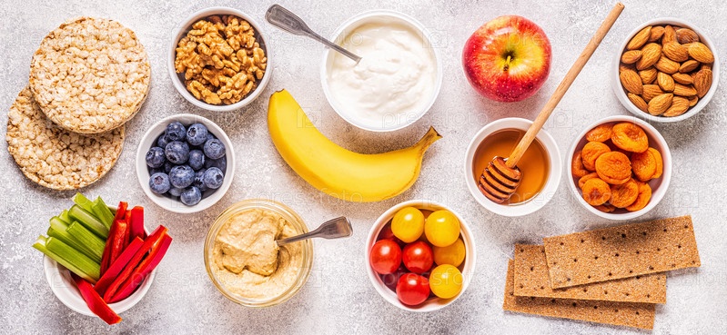 Концепция здоровой закуски, вид сверху