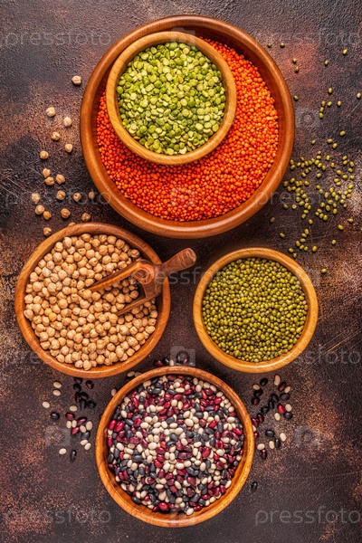 Ассортимент бобовых - чечевица, горох, мунг, нут и разные бобы