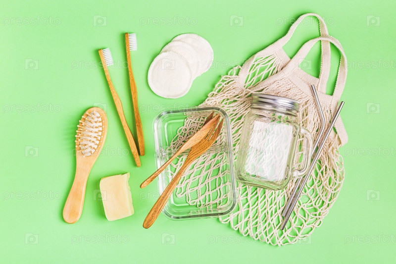 Стеклянная посуда, хлопковый мешок и предметы личной гигиены