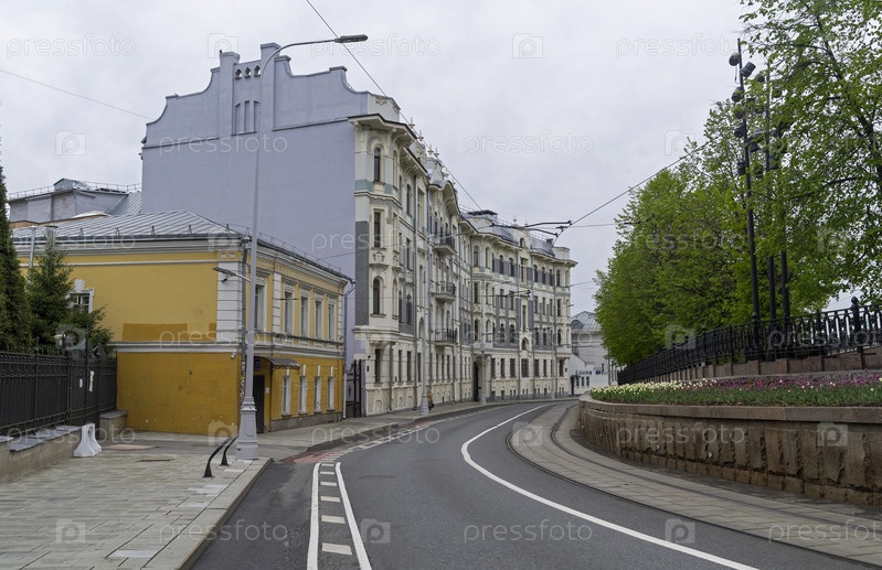 Доходный дом Болдыревых в начале Яузского бульвара. Москва. Облачный день в конце апреля