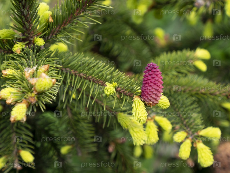 Picea abies, ель портретная или европейская, молодая женская шишка