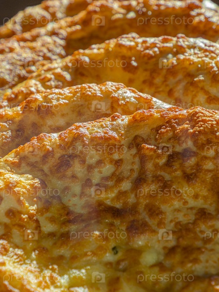 Мегрельские хачапури с сыром, грузинская кухня, на полке магазина, горячие и вкусные